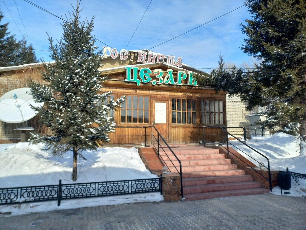 The hotel is called "Caesar". Convenient location, at the entrance and exit towards the Russian border. Only 4800 tenge was paid for a room for two. He's going to spend the night. Parking is guarded and paid 300 tenge. There is a car wash and a cafe nearby.