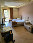 Прекрасное расположение отеля: кафе, апацхи, магазины в шаговой доступности. До центрального рынка и пляжа Мокко едет общественный транспорт. Набережная рядом, минут 10 прогулочным шагом и вот ты уже у моря. Сам отель чистый, убирались каждый день, за две недели отпуска меняли постельное белье и полотенца 3 раза. Хороший матрас, комфортный сон. Есть кондиционер, холодильник, чайник с 2 чашками и маленькими ложками, графин и 2 стакана. Вода была всегда, перебои с электричеством не наблюдали, пару раз было на 10 минут и все. Из минусов: нет стирки, но мы попросили таз и стирали сами. Вежливый и приветливый персонал. Всегда интересовались удобно ли нам. Обязательно приедем ещё ❤️