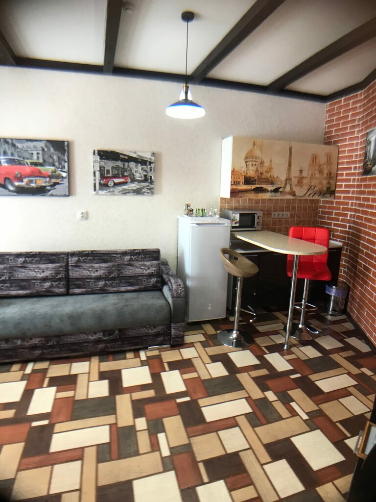 Уютный номер в стиле Лофт , с ванной комнатой , двумя ортопедическими кроватями и большим диваном, с обеденной зоной . В номере, кондиционер, телевизор , холодильник, СВЧ, чайник, набор посуды. Имеется парковка для машин.