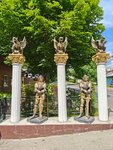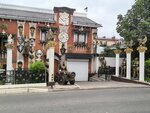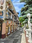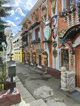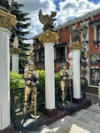 Оригинальный, не обычный частный жилой дом оформленный фигурами, колоннами в разных стилях. Выглядит забавно и привлекает внимание. Хороший арт-объект.