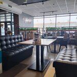 Просторное кафе, красивый интерьер, удобно, что есть детская зона . Еда вкусная через раз. Кофе горький , не вкусный , сырная пицца почти без сыра , весь вкус портят травы, и еще немного подгорела , очень сухая была. Паста была вкусная , картошка фри тоже. Смените,пожалуйста музыку ,просто усыпляет, монотонная, кошмар )