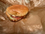 Бифштекс из мраморной говядины Black Angus, приготовленный на лавовом гриле, салат айсберг, болгарский перец на гриле, красный лук, сыр чеддер, свежий томат и перец халапеньо. По умолчанию степень прожарки бифштекса Medium. По желанию вы можете выбра