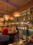 Из плюсов: уютно по домашнему. Официанты приветливы, работают быстро и четко. Выше всяких похвал. Еда вкусная и свежая. Чуть маловаты порции с нарезками. Сами же блюда порой потрясают своими размерами. Винная карта слабовата, точнее бедновата, более того, часто слышали, что этого нет извините, другое тоже закончилась и тд. Это прям раздражало. Столы не большие. Учитывая большие тарелки, теснота сразу дала о себе знать. Туалет тоже можно содержать чуть лучше. В целом довольны и ценами и качеством и атмосферой.