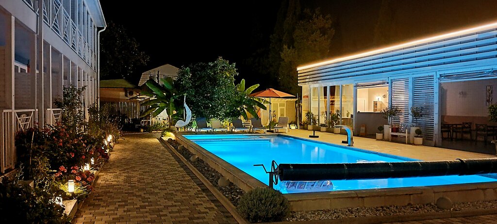 Прекрасный гостевой дом, очень чисто и уютно, прекрасный и теплый бассейн, большая кухня(столовая), были большой компанией и все остались довольны. Единственный минус это парковка, летом наверно это большая проблема(х/з) и отбой в 22-00( вот такие правила проживания) для семейного отдыха то что надо.