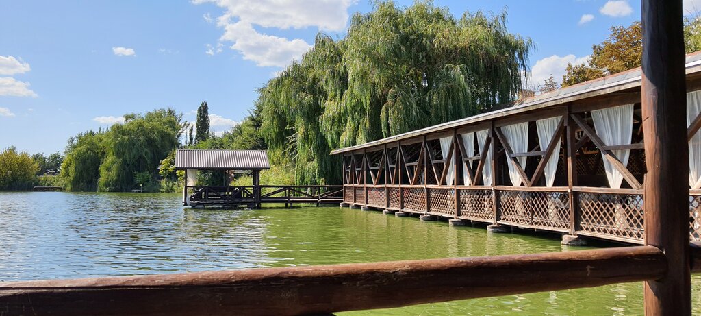 Мне всё понравилось! Особенно неожиданным оказалось, что имеется водоём: такое наслаждение отдыхать и смотреть на гладь воды и на купающихся на противоположной стороне берега. Еда вкусная, персонал приветливый. Много беседок, есть домики для проживания. Тишина… Правда, связи нет практически, хотя по всей территории расположены точки вай фай, они ловят не очень: и например, чтобы вызвать такси за ворота выходить вообще нельзя. Короче, годное место для большой компании и проведения мероприятий!