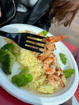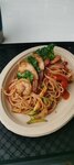 Дорого, долго, невкусно Креветки не очистили от хвостов, рыба не очень свежая и запах не самый лучший Макароны разогретые Подачи будто для свиней Рыба местами отдаёт горечью.