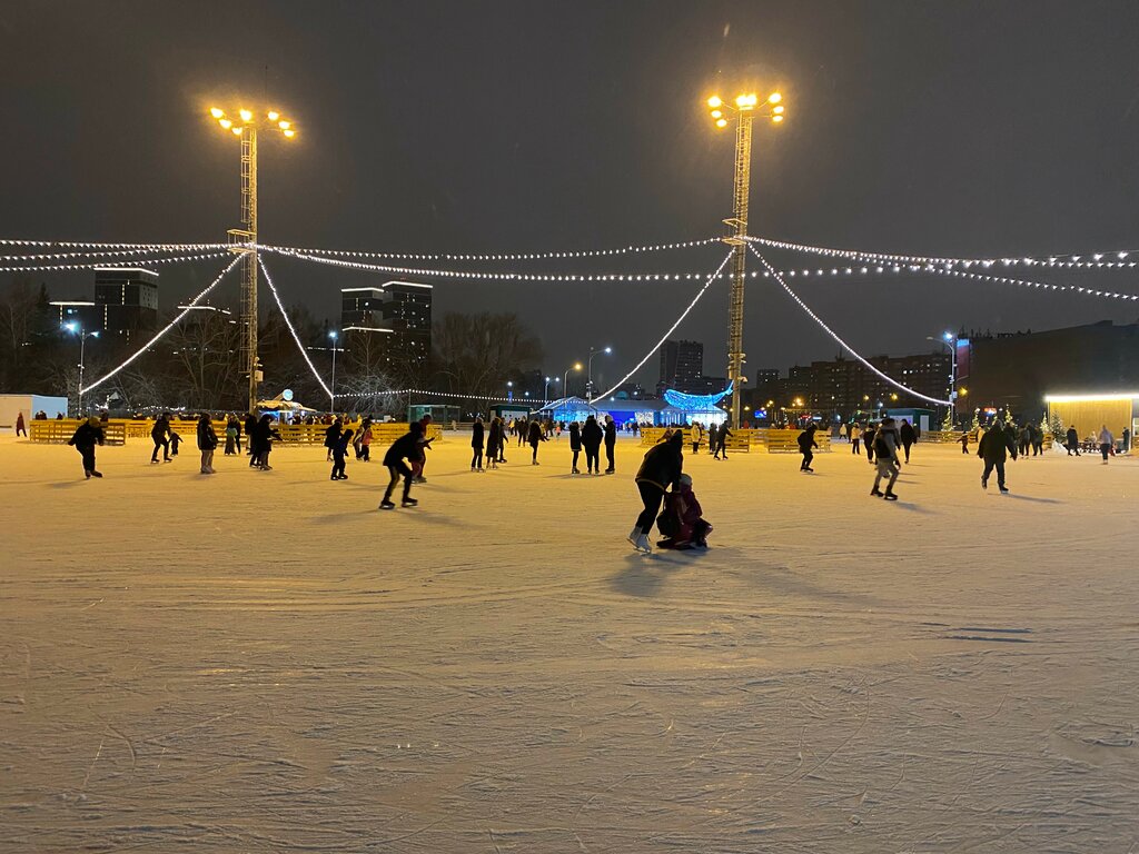 Приехали на каток 9 января в первой половине дня, со своими коньками, билет 400 руб с каждого, скидки студентам нет, карты были куплены в прошлом году, поэтому по 80 руб за покупку карты не платили. Время безлимит, это радует, двух часов хватило сполна. Лёд относительно неплохой, так как были в полдень, ближе к 14 часам заметно лед искатанный, народу много, но толкучки нет. Погода ясная, осадков не было. Много людей с малыми детьми, когда ребенок на коньках, а родители рядом в обуви, считаю, что для них можно выделить отдельную зону для их же безопасности. Сильно испортил впечатление тот момент, что мы были вынуждены заплатить полную стоимость за сопровождающего человека, который просто за 480 руб просидел в раздевалке ибо кататься не умеет и не собирался. Почему для таких людей не сделать вход просто по карте 80 руб и пусть сидит себе на лавке. Нет, ещё сверху 400 руб заплатили. Это жирный минус организации. При такой проходимости, не обеднели бы уж. В итоге, за человека, который не катался и даже на лед в обуви не выходил, мы заплатили больше всех. Нет никакого оформления, ёлка и кит или кто там в центре, не интересно, даже оленей прошлогодних нет. Поехали туда только из-за удобства расположения и графика работы. В следующем году скорее всего выберем другое место. Места общепита не посещали, туалет чистый.