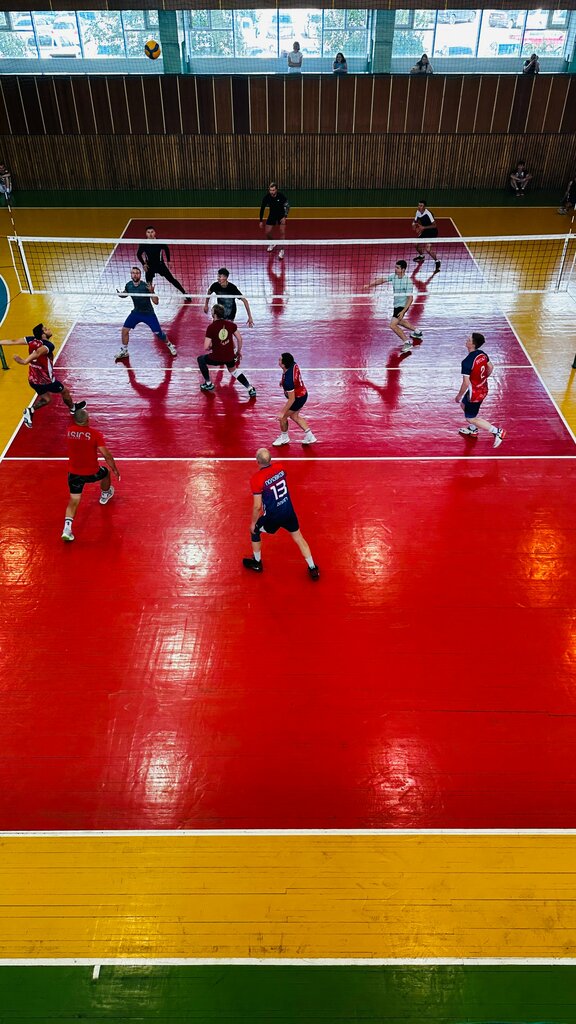 Нормальный зал микрорайонного значения. Чисто. Высокий потолок, для волейбола 2 площадки. Раздевалки норм. Есть душ, правда не все работает.