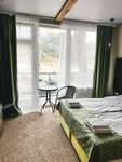 Очень приятная гостиница! Витражные окна с видом на горы - топ! Лучше брать номер на втором этаже. У нас был 2-комнатный номер. Просторно. Есть чайный набор, холодильник. Балкон! Все свежее и новое Завтраков нет, но у отеля есть отдельный красивый и уютный зал для гостей, в котором можно самостоятельно приготовить. Для этого там все есть: плита, холодильник, посуда, приборы и тд . Там же есть настолки. Видела как постояльцы сидели там вечерами с коньяком и гитарой. Из минусов - отопление через теплые полы. Второй этаж в наш приезд в ноябре был перетоплен. Душновато, если не открывать окна.