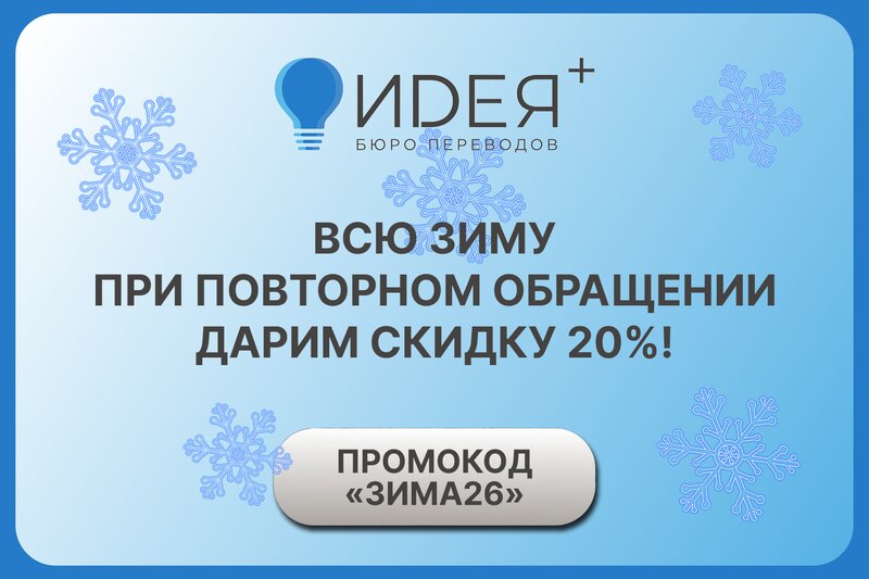 От всей Души благодарю за качество, скорость и возможности выполненных трудов "Идеи+"! Всегда перевожу документы здесь, можно нотариально заверить! Переводчики молодцы!!! Успехов и процветания! ❤
