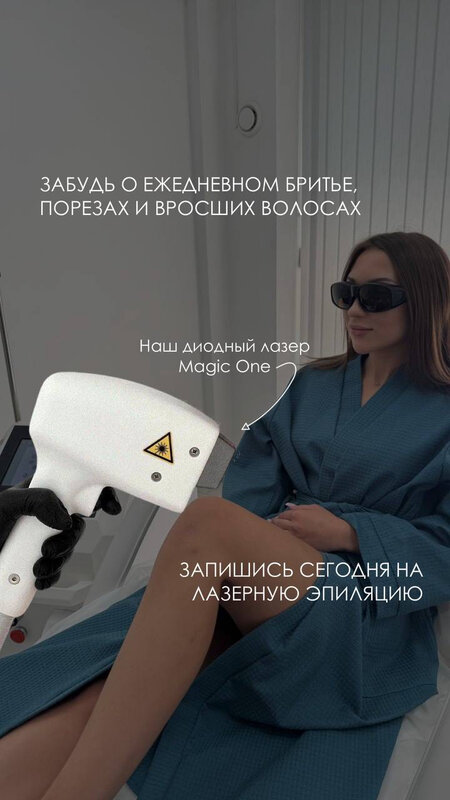 Прохожу курс эпиляции на диодном лазере. Очень довольна! · Боль: Есть, но терпимо (похоже на щелчки резинкой). · Сервис: Вежливый администратор, мастер-профессионал, все четко и без опозданий. · Чистота: Все одноразовое, инструменты стерилизуются, чувствуешь себя в безопасности. · Итог: Волосы исчезли на 95%, кожа гладкая. Цены соответствуют качеству. Рекомендую!