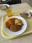 Обедали группой. Комплексный обед: салат из свежей капусты, борщ, пюре картофельное с куриной котлетой, чай и булочка с вишнёвой начинкой. Обслужили быстро, всё горячее и вкусное. Хлеб собственного производства, свежий и очень внусный. Персонал вежливый. Чисто и уютно.
