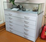 Профессиональная горизонтальная музейная витрина ТПС3, с фальш накопителем. Пылезащищенное исполнение.