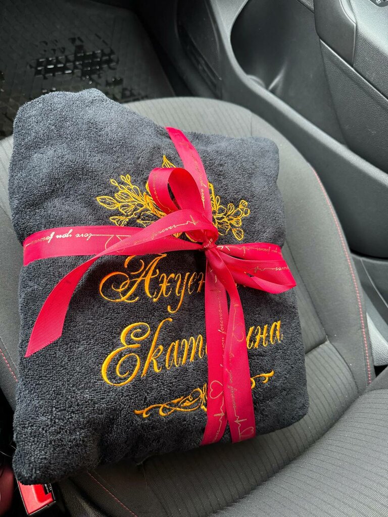 Очень довольна качеством и обслуживанием. Брала халат и полотенце, все просто супер. Всегда посоветуют как лучше сделать надпись, изготовление молниеносное, доставка в срок, цены отличные! Однозначно рекомендую!