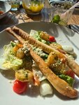 Ситуация: хочется на море. Креветки, кольца кальмара, фирменный томатный соус, томаты и рукола