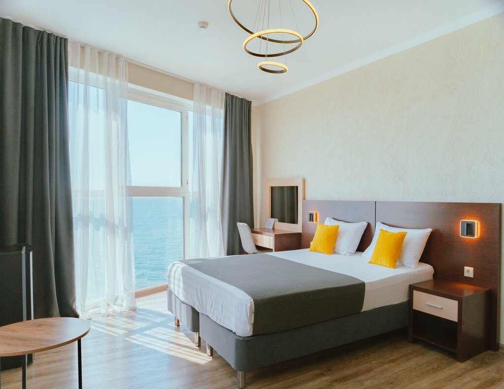 Останавливались на 1 ночь в номере с видом на море. Вид шикарный. Нас все устроило и по местоположению тоже. ~9мин на Ласточке из аэропорта до ж/д вокзала. Назад в аэропорт заказали такси на ресепшен за 500р. Моё мнение, что отель на несколько ночей нормальный, но если останавливаться дольше, чтобы отдохнуть на море, он неудобен. Рядом нет недорогих столовых, чтобы поесть. И может быть я не разобралась, но и чтобы добраться др отеля, нам всегда приходилось проходить через вокзал с соответствующим досмотром. Также кому-то может быть важно, что отель 5-ти этажный, а лифта нет. И wi-fi на 5 этаже почти не работает, с учётом того, что мобильный интернет в Сочи часто глушат