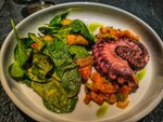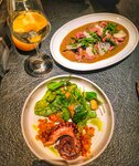 Нежный завтрак с добавлением кускуса. Кальмар, креветки и форель придают насыщенный вкус, а авокадо и зелёный салат добавляют свежесть. Яйцо пашот и креветочный соус биск обогащают блюдо