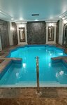 Бассейн 2х3 м, глубина 1,4 м с гейзером, гидромассажем, водопадом. Две зоны отдыха, вместимость 6 человек. Хамам - турецкая парная, 100% влажный пар, температура 45°-47°.