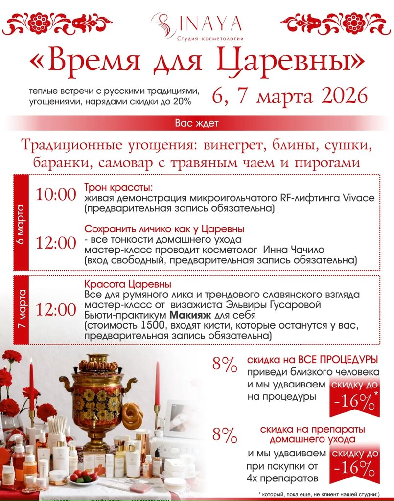 Спасибо большое команде Inaya за профессиональный подход и трепетное отношение к своим клиентам. Очень комфортная атмосфера, грамотные специалисты, которые не навязывают услуги, а искренне помогают достичь красоты и здоровья.