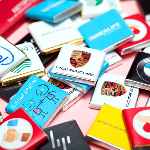 Самый популярный формат рекламного шоколада. Изготовлен из премиального бельгийского сырья Barry Callebaut. Благодарите им клиента за визит, вкладывайте в заказы, радуйте сотрудников в офисе или разместите у себя на ресепшен.