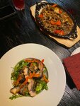 Были в субботу вечером и что сразу удивило кроме нас не было никого, пока сидели пришли еще две парочки, но не густо для выходного дня. Из плюсов: Очень красивый ресторан, для любителей фоткаться, тут очень много красивых фотозон Быстрая подача, нас было 6 взрослых и 5 детей, заказ принесли в течение 15 минут Салаты нам понравились, заказали 3 разных вида и все были вкусные Минусы: Раздутое меню, можно сидеть долго выбирать из похожих позиции. Заказал Курицу Карри и получил просто курицу в панировке, очень сухая и без вкусная. Наверно к курице не помешал бы соус, но возможно я не понимаю ничего в Азиатской еде. Так же заказал кальмаров и осьминогов на сковородке, кальмары и осьминоги были как резиновые, чтобы прожевать надо было хорошо прям поработать челюстью, ну и по вкусу они были не вкусные.