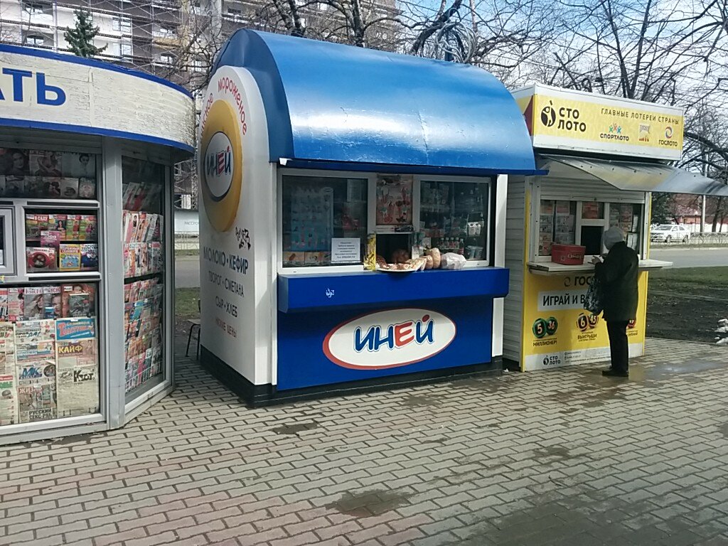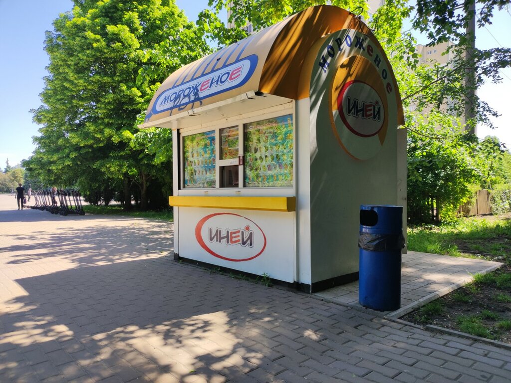 Хороший ларёк по продаже мороженого от местного производителя «Иней». Ассортимент мороженого небольшой, но думаю каждый найдет себе по вкусу. Сам ларёк старенький, стоило бы заменить на более новый.