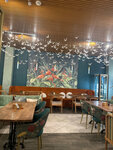 Кафе с уютной атмосферой, удобно разделены столы зонами, есть небольшая детская комната, заказ привез которобот, с милыми пожеланиями, официанты приветливые, меню разнообразное, порции большие , подача красивая. За соседним столиком отмечали др и торт со свечкой под музыку хеппи бездей вывез роботокотик. Наш ребенок в восторге и мы тоже вкусно пообедали.