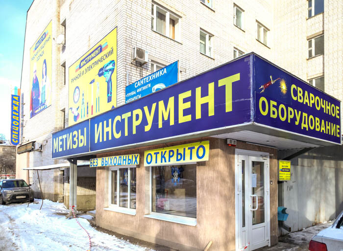 Строительного магазина там нет, есть магазин инструментов, в котором два покупателя уже много, очень тесно, товар просто кучей, на витринах все в кучу лучше спросить сами скажут что есть у них. Консультация хорошая, товар хороший.