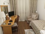 Хороший чистый уютный отель. Горячая вода без перебоев. 2 местный и 1 местный номер брали. В 2мест.(305) есть чайник, чай, сахар👍 Кресла и столик. В 1местном (102) очень плохо работал вайфай. В отеле есть завтраки, но мы не пробовали. Но то что они есть - это замечательно.