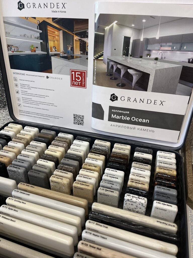 Много лет благополучно сотрудничаем с Интер Стоун Екатеринбург. Постоянно получаем новые образцы Grandex и Neomarm и клиенты всегда заказывают самые актуальные декоры камня. Мойки отличные - проблем нет. Приятно работать с профессиональной командой Интер Стоун. Цены доступные. Фото с реализованных проектов нашей мебели и столешницы с мойкой Интер Стоун и камень Грандекс.