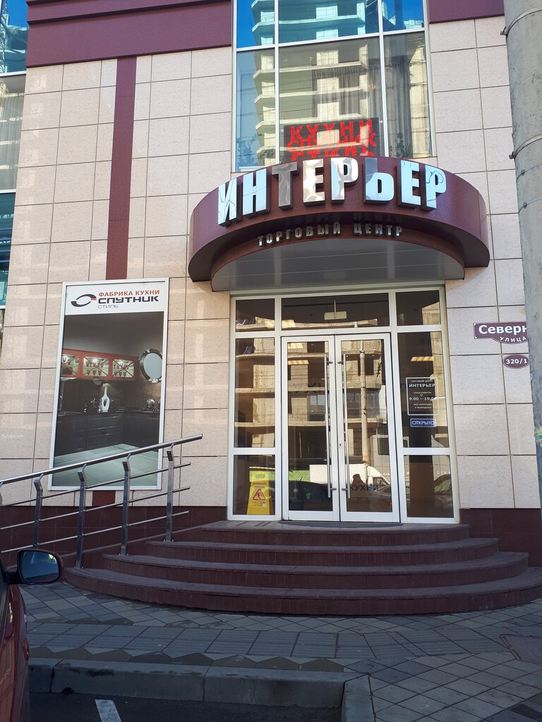 Торговый центр Интерьер находится на улице Северная 320 /1 в городе Краснодаре. Очень хороший выбор товара. Советую поситить этот центр. Есть входные и межкомнатные двери фарнитура к ним. Сантехника керамическая плитка.