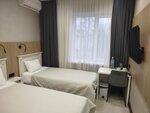 Снимали номер в этой гостинице с 27 июля по 28 июля 2025г. Семья три человека. В день заезда на ресепшен была очень внимательная, вежливая, приветливая девочка-администратор, помогла с выбором кафе-ресторана на вечер. После заселения спросила, всё ли в порядке, всё понравилось. Жаль не посмотрела её имя. Очень ей благодарны. Номер очень чистый, уютный. Совеременный ремонт. Есть своя мини-кухня, санузел, душ. Если забыли гигиенические принадлежности, в ванной всё есть: мыло, гель для душа, для каждого набор для чистки зубов и по 3 полотенца. В номере есть кондиционер, телевизор в каждой комнате. Брали номер с завтраком. Завтрак в кафе рядом с гостиницей, туда есть отдельный вход из гостиницы и с улицы. Завтрак до 10 часов, 4 варианта на любой вкус. Пришли в 9:30 всё было в наличии. В 10 часов пришли парни, никто не отказал им, но осталось только два варианта завтрака. Всё очень вкусно и точно не останешься голодным. Выезд до 12 часов.