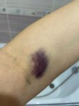 Здравствуйте! Хотела бы оставить отзыв. В субботу сдавала анализ на ТТГ и Т4. По итогу пришло сообщение о пересдаче повторно данного анализа,по не известным мне причинам. По итогу меня расстроила не сама пересдача анализа,а состояние моей руки после забора крови. Фото приложила. Сегодня была на пересдаче,другая медсестра,очень аккуратно все сделала. Спасибо большое!