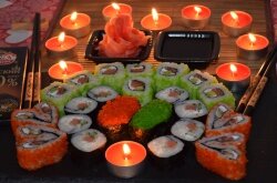 В суши слишком много риса. Из-за этого вкус самой начинки чувствуется плохо. В рисе мало уксуса для суши. Зато суши сытные благодаря размеру) Плюсов у ресторана больше: Понравился суп рамен. Вкусный бульон и отличная лапша. Хорошее обслуживание и подача блюд. Еду готовят оперативно - не надо ждать по полтора часа.