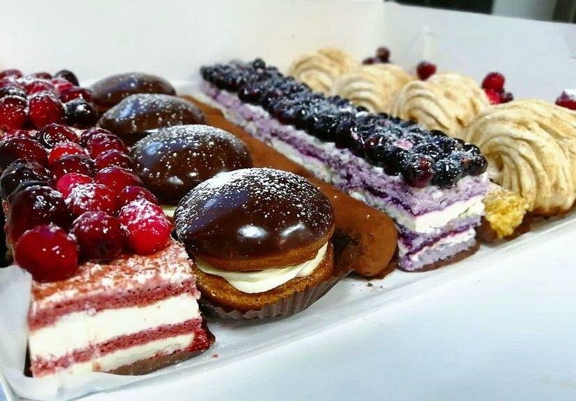 Очень вкусные десерты. Можно взять коробочку легко) Понравилось что состав пирожных не химозный, а вкус , например, чизкейка сливочный и нежный