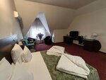 Приветливая встреча. Отличный номер, чистая ванная, свежее белье. Есть всё необходимое. Не очень понравился завтрак, но это уж личные капризы. Сожалею, что из-за форс-мажора в Отеле не смогла пообедать-поужинать в кафе и оценить кухню. Для меня единственный минус - из центра пешим ходом добираться минут 30 по неуютной дороге. Но зато тем же пешим ходом удобно и быстро добраться до ж/д вокзала. Рядом с Отелем хороший парк и есть продуктовый магазин, что всегда бывает необходимо. Спасибо!