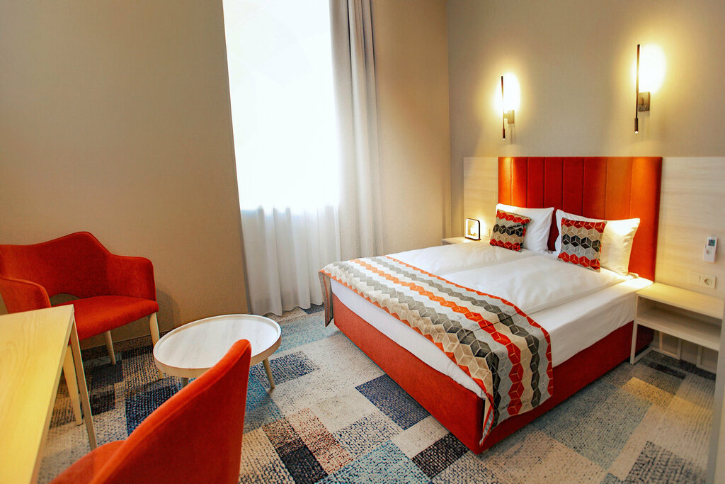 Тридцать комфортабельных номеров «Одноместный стандарт», оснащены всем необходимым для полноценного отдыха. На площади в 12 м2 расположены односпальная кровать, рабочий стол, вешалка-шкаф, большое зеркало и телевизор.