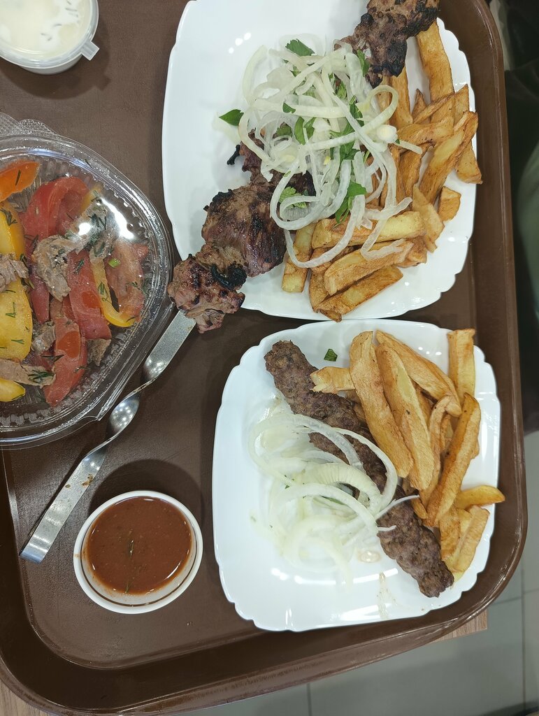 Отвратительное место. Плов без вкуса и запаха. Мясу неизвестно сколько времени. Заветренное, сухое. Жилы сплошные. Оливье- отдельная страшная история. Нарезан ужасно. Огромными кусками. Без основных ингредиентов. Картофель однозначно сварен несколько дней назад. Кислятина. Лепёшка сухая, жёсткая. Компот даже не буду комментировать. Одну звезду заслуживает только посадочное место.