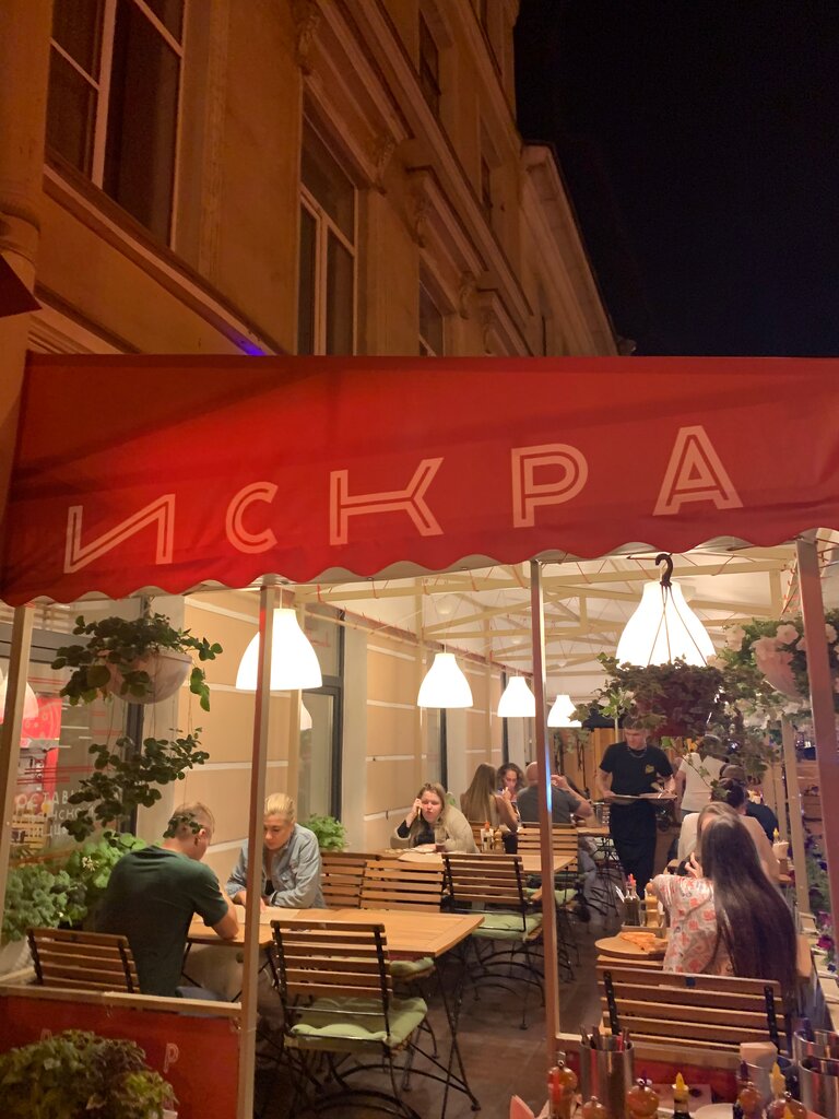 Когда бываем в Питере, всегда останавливаемся на ул.Рубинштейна. В "Искру" заходим каждый день, можно позавтракать, пообедать, поужинать с пивом, переговорить с коллегами, т.к. музыка не грохочет. Меню итальянской направленности) Есть столики на двоих, есть на четверых. Заведение небольшое, но аккуратное, чистое, пиццу при вас готовят, муж говорит о ней - "бомба") Всё очень вкусно. Летом, как и все заведения в округе, делают летнюю веранду. Нам очень нравится)