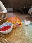 Принесли сырой бургер с ужасным соусом. Если приезжаете сюда - лучше привозите еду с собой , 0/10 оценка Вся остальная еда мне тоже показалась так себе , но обслуживали нас очень долго, мы были одни в зале и счет несли минут 20