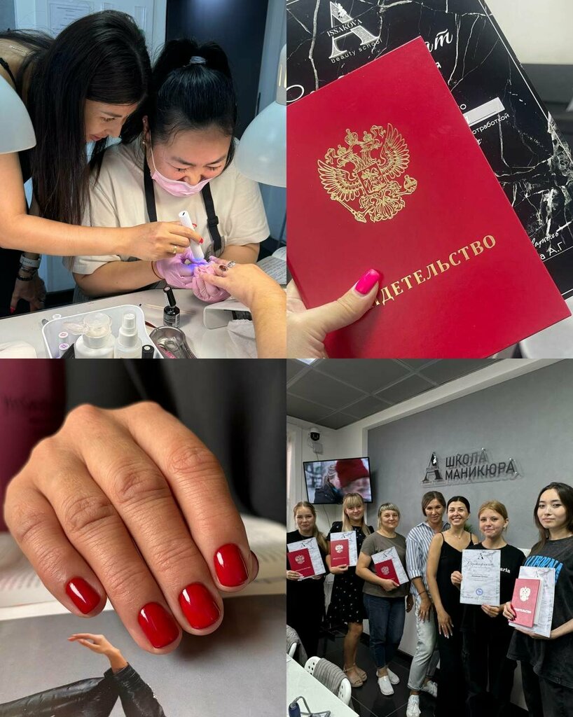 Я стала мастером маникюра! Отучилась в самой лучшей школе! Школа Анастасии Иссаковой - лицензированная школа,которая выпускает молодых специалистов,повышает навыки мастеров у которых уже есть стаж,короче. ЭТО САМАЯ ЛУЧШАЯ ШКОЛА ! Предлагают различные способы оплаты и разные акции,сертификат. Объясняют все доступно и понятно,спасибо большое инструкторам. Я прошла базовый курс "Маникюр от А до Я", хотя казалось бы... Я самоучка и все знаю ..., но НЕТ Я исполнила свою мечту, получила за 5 дней огромное количество знаний и нарабоиала опыт,собрала портфолио. Сдали 2 экзамена и на 5 день нам выдали свидетельство государственного образца, 4 сертификата и очень много сертификатов-сумму 4500 на другие курсы в этой удивительной школе.