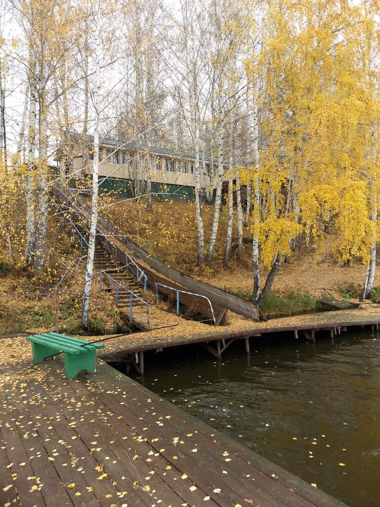 Очень приятная база отдыха, для больших компаний. Плюс в том, что на территории всего два домика у которых беседки расположены с разных сторон, за счёт этого не слышно соседей. На территории есть волейбольные поле, качели, песочница, бассейн и баня. После бани можно окунуться в озеро с пирса, к которому ведёт крутая, но удобная лестница. Так же с пирса можно порыбачить или просто позагорать и насладится видом. У большого домика беседка соответствующего размера где распрложен большой стол со скамейками, довольно таки большой мангал и очаг для приготовления блюд в казане. Если еда уже не лезет в рот и хочется немного уединиться и погулять, то недалеко от базы расположен лес с тропинками в котором полно черники ( если вы отдыхаете в сезон, конечно). В общем мы остались довольны, проведя на базе двое суток 👌