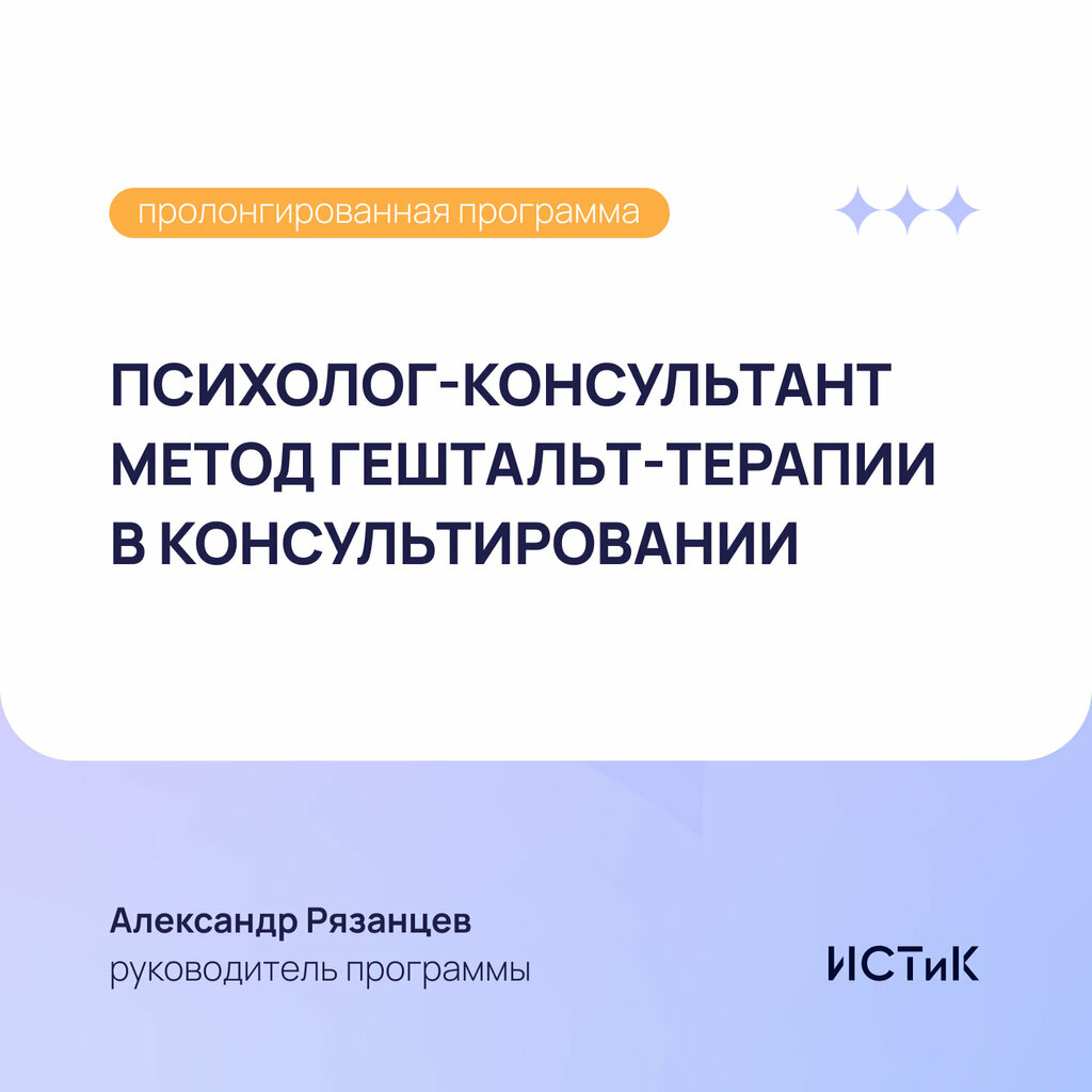 Станьте востребованным гештальт-консультантом! 1274 часа практики. Диплом.Освоите работу с парами, бизнесом и личными запросами. Итоговая аттестация с супервизией. Старт — здесь и сейчас!