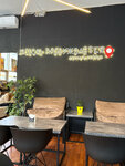 Приятная атмосфера, с очень приятными бариста,подскажут и с сиропами и с напитком. Вкусный кофе и большой выбор альтернативного молока Очень уютно, можно придти поработать или наоборот отдохнуть от работы