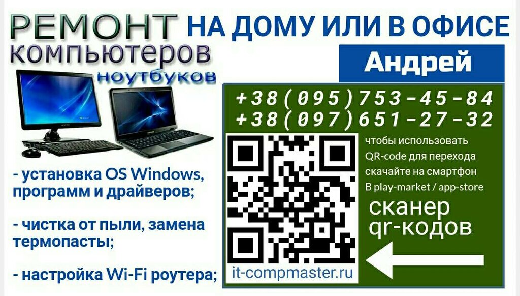 -Выезд компьютерного мастера на дом -установка виндовс на компьютер с флешки -ремонт блоков питания - ремонт ПК - ремонт ноутбуков -ремонт мониторов -замена клавиатуры на ноутбуках - замена комплектующих -замена матриц на ноутбуках -за