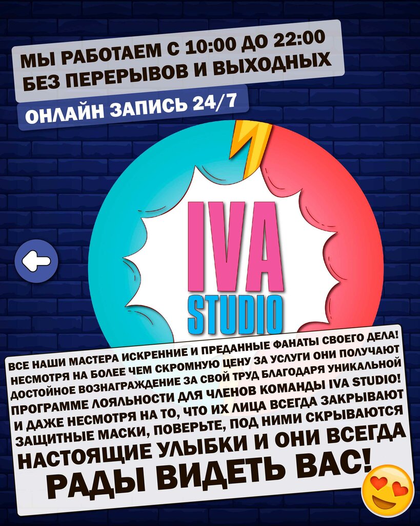 Ходила в iva studio на коррекцию с окрашиванием бровей к Елизавете и снятие+маникюр+покрытие с дизайном к Дарье. В салоне приятная атмосфера,все чисто,мастера очень доброжелательные. Елизавета очень приятная и милая девушка. Я очень осторожно подхожу к выбору мастера по бровям, поскольку боюсь что сделают не то что мне подойдет и в дальнейшем это нужно будет исправлять, но Елизавета мастер своего дела! Результатом оказалась больше чем довольна - идеальная форма бровей и цвет,который мне не могли подобрать прошлые мастера с других салонов. Дарья также очень приятная девушка и оставила о себе только хорошие впечатления. Набор доставали при мне из крафт-пакета, никаких повреждений кутикулы и неровностей. Не знала какой выбрать цвет и дизайн,но мастер помогла определиться исходя из моих желаний. Во время носки нет никаких жалоб,покрытие шикарное,фигурки держались хорошо. Быстрая и качественная работа. Осталась очень довольна салоном и мастерами, планирую ходить и дальше!!