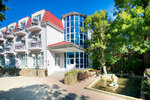 На территории базы отдыха очень уютно, чисто, а самое главное, в самый знойный день, всегда прохладно. Так как находится в тени деревьев. Расстояние до моря 200 метров. Расположение удобное. Персонал доброжелательный. На территории есть бассейн.Нам понравилось. Правда в номерах, которые были свободны на момент нашего заезда, мебель старовата, хотелось бы посовременнее. Телевизор древний.Но тем не менее, нам это не испортило отдыха. Рекомендую к посещению.