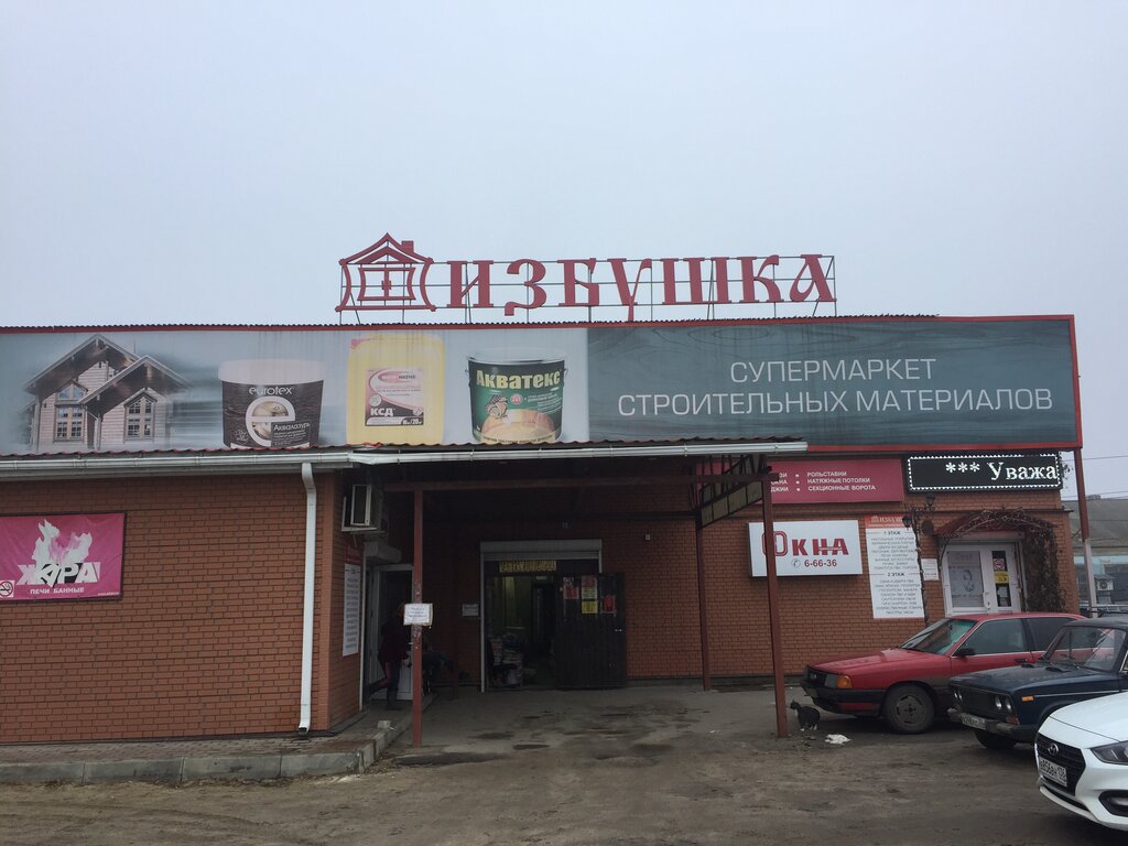 Избушка сам магазин превосходный.Есть все как для ремонта так и для отделки.Большой выбор санузлов ,душевых,ван и др.Всего не перечислишь,надо ехать и брать.