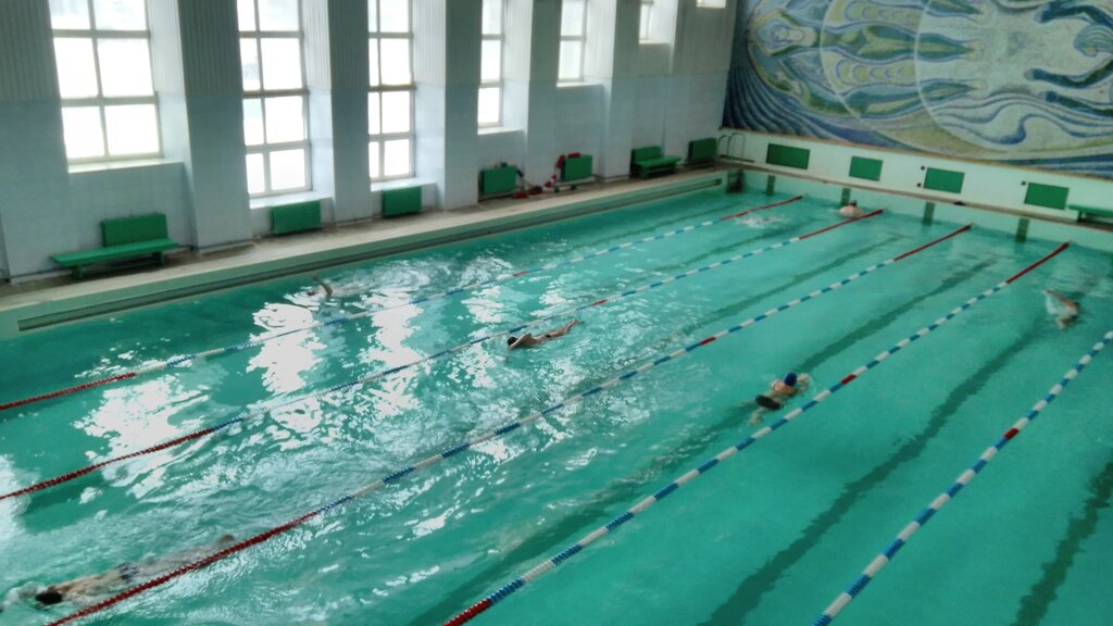 A truly folk pool made of a scoop. It is popular with the population as the maximum depth is about 170 cm, has 6 tracks with a length of 25 meters. There is also a game room and an aerobics room on the basis of the FOK.