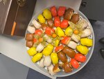 Заказывал закуски и салаты на день рождения общей суммой около 10к руб. Привезли вовремя, сделали скидку в честь др. Еда свежая и вкусная. В следующий раз обязательно повторю. (На фото шашлык из другой доставки).